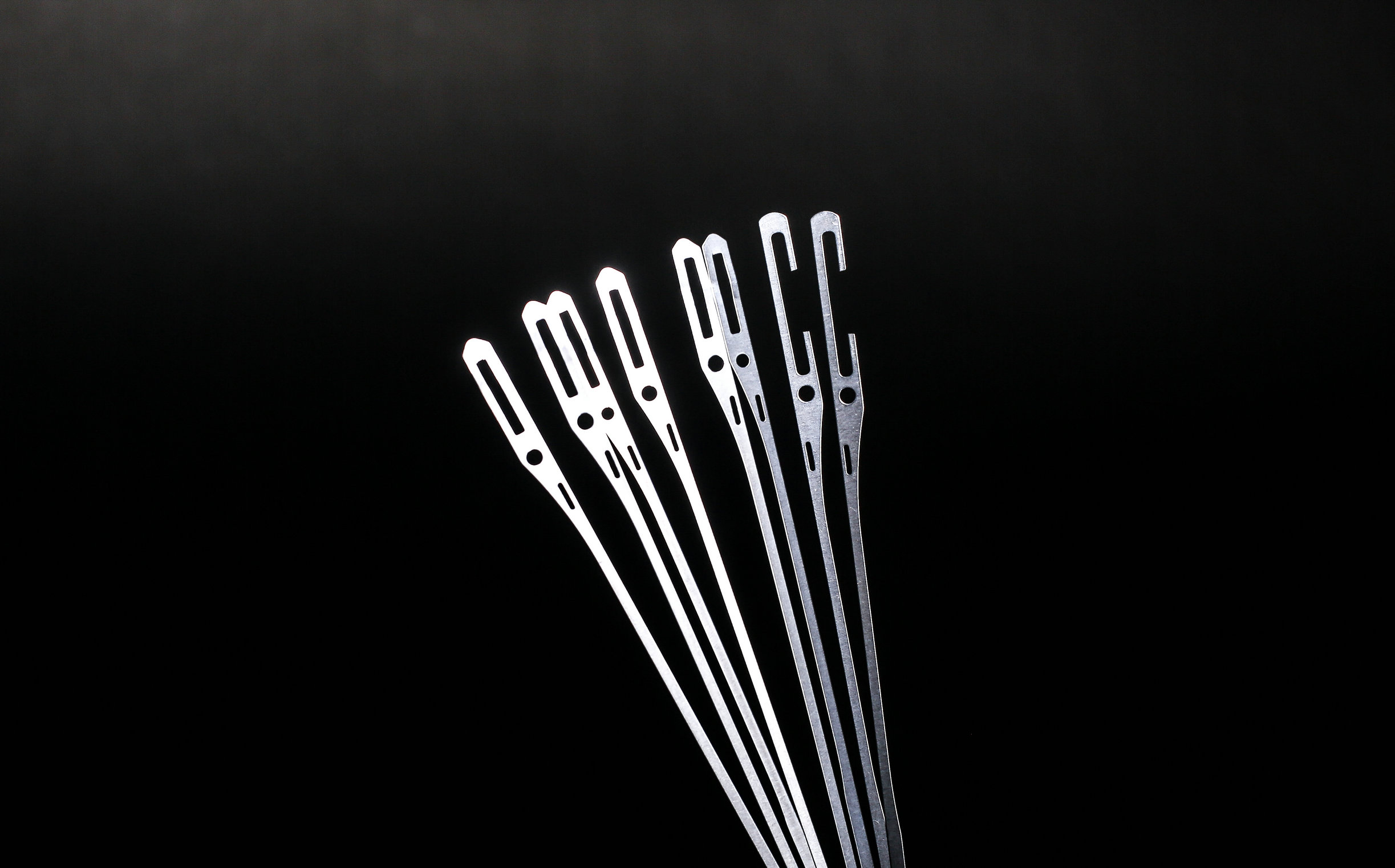 綜絲生產車間使用高精密度的耐磨型420J2不銹鋼材料,經高溫熱處理,通過自主研發的特殊生產工藝及先進的全自動生產線,生產各種規格的不銹鋼綜絲(260、280、302、330、331)及停經片(145、165、180開口、閉口)。產品具有韌性好、 防銹程度高、耐磨性強、使用壽命長等特點,先進的倒角技術使我們的綜絲綜眼更加光滑耐磨,公司所有綜絲產品均通過法國史陶比爾和日本藤堂自動穿綜機測試!